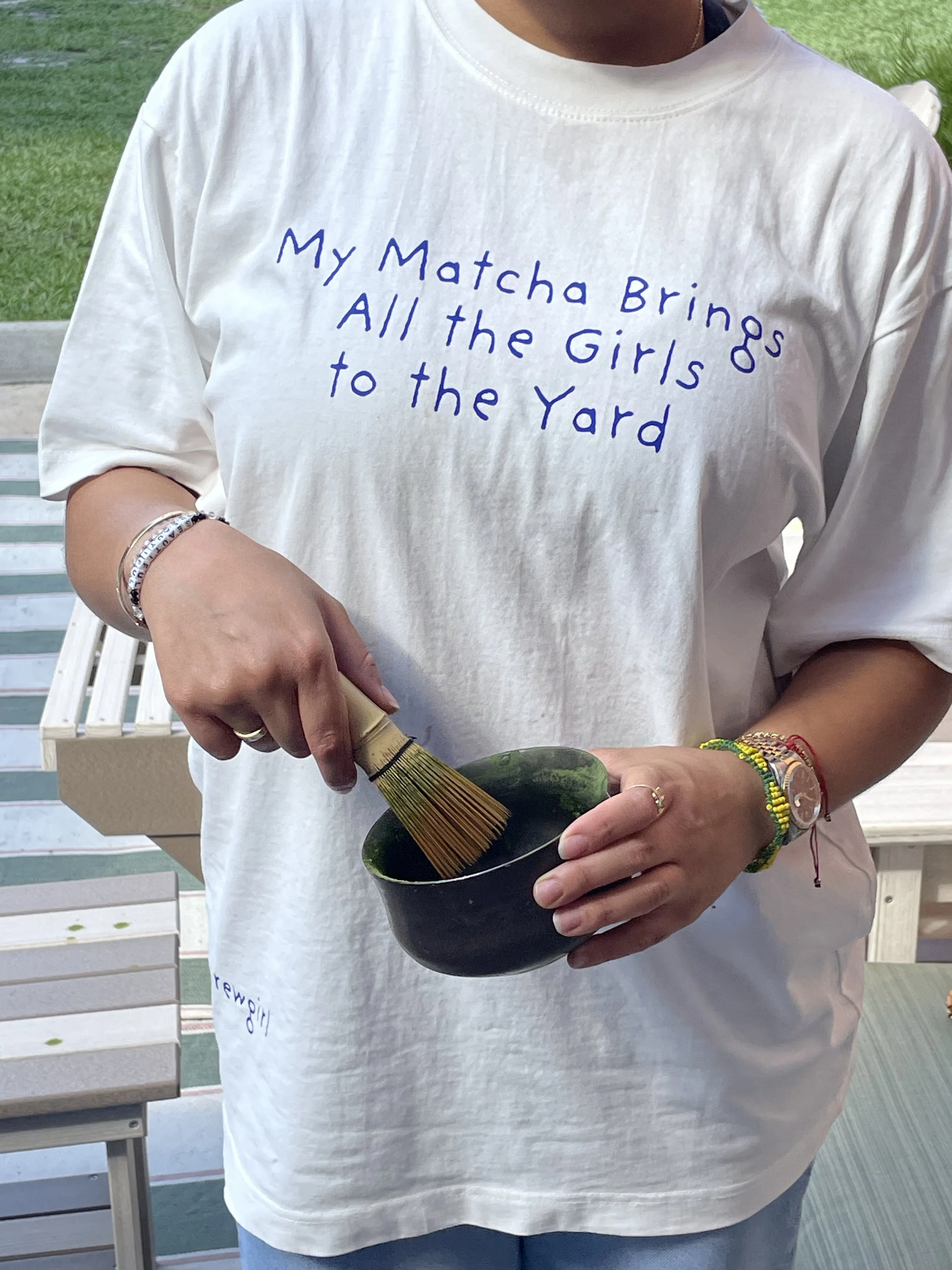 Categories: Select a Category Brewtiqué Events Brewtiqué “My Matcha Brings All The Girls To The Yard” Tee $45.00 Preformative AF Tote Bag $19.00 Matcha Vanilla Glossy Lip Syrup $21.00 Secret Garden Cluster Bag Charm $25.00 Flower Child Cluster Bag Charm $25.00
